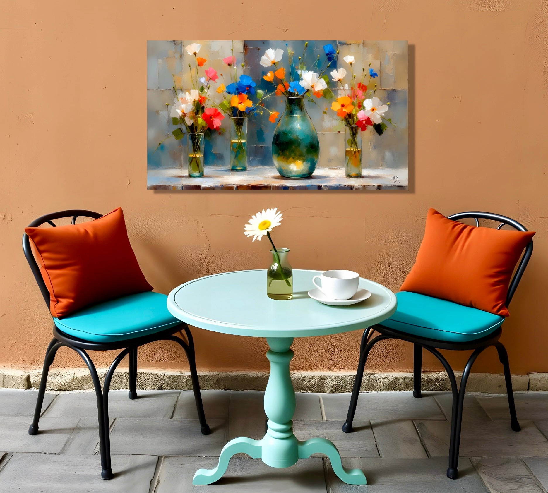 The enigmatic beauty of In from the Garden transcends an ordinary collection of cut flowers. The subtle impressionist and abstraction techniques create a sense of visual echos and reflections that result in a vibrant harmonious whole.